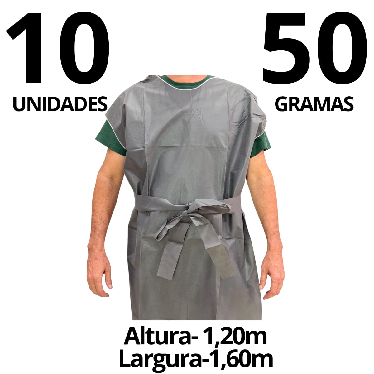 AVENTAL DESCARTÁVEL CINZA 50 GRAMAS - PACOTE COM 10 UNIDADES